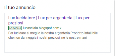 - Search ads: si tratta di annunci di testo visualizzati tra i risultati di ricerca in una pagina del motore di ricerca di Google.
