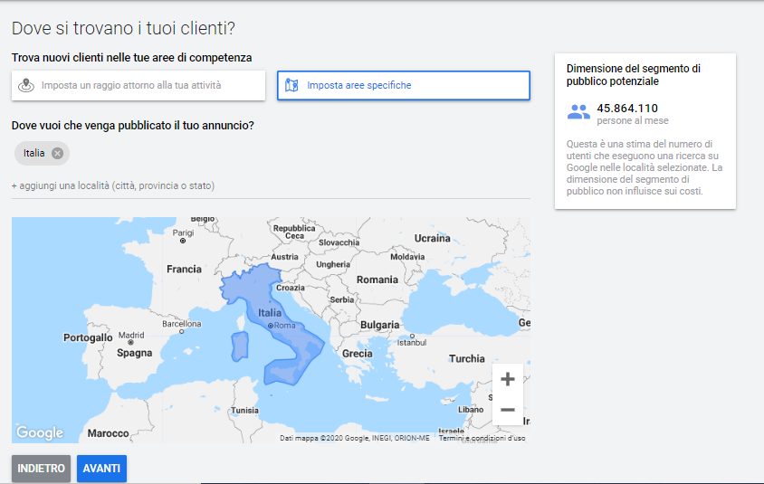Infine, se si tratta di prodotti o servizi che intendiamo offrire senza limiti geografici, quindi in tutto il Mondo, allora possiamo lasciare questo campo vuoto, senza specificità.