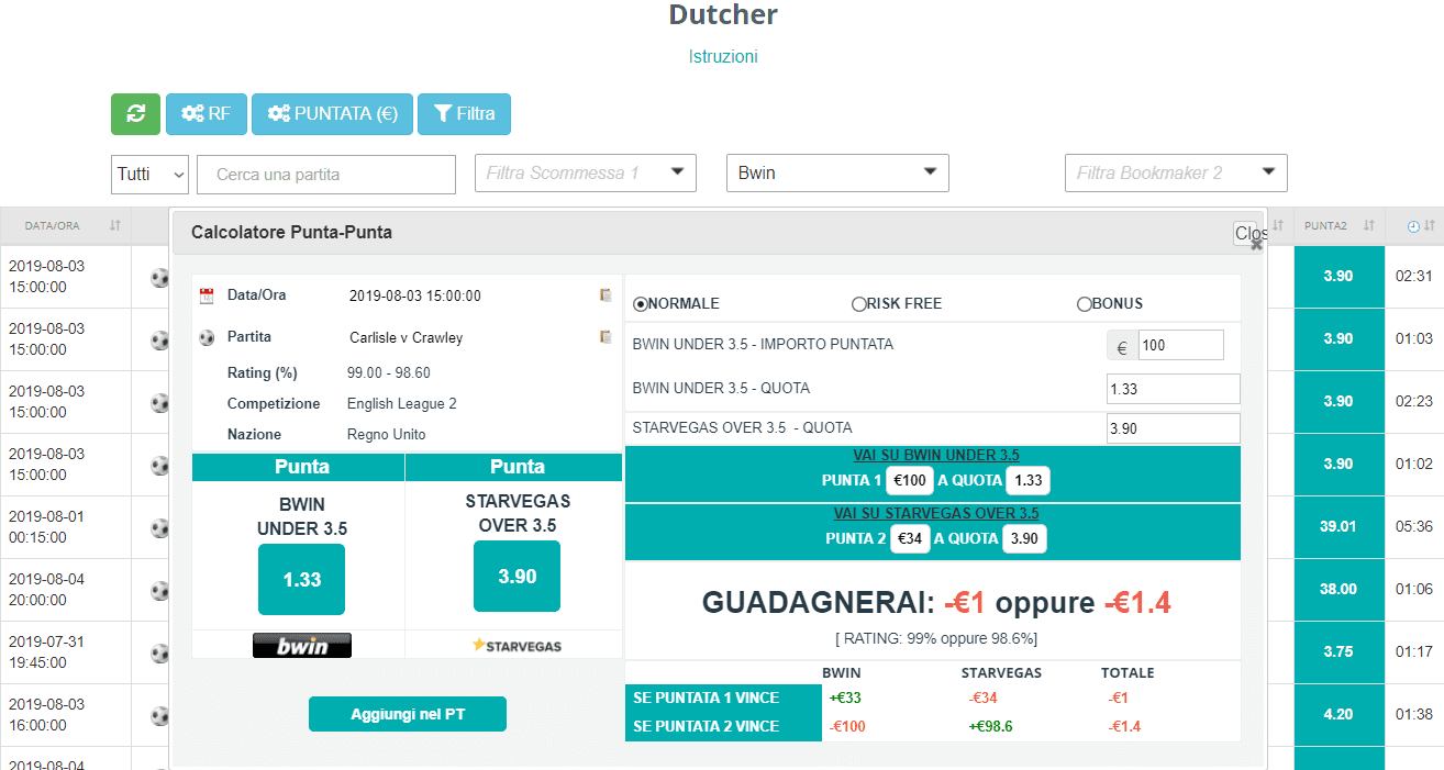 Per il resto, come detto, non ci sono rischi giacché il sistema piazza anche una scommessa opposta alla nostra. Controbilanciandola.