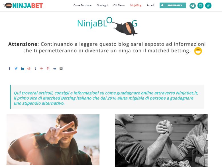 Cos’è Ninjabet? Si tratta di un portale ideato nel 2016, costituendo di fatto la prima community italiana che guadagna o cerca di farlo tramite il cosiddetto Matched Betting. Ma anche il SureBet e il Trading Sportivo.
